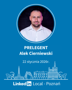 Weź udział w LinkedIn Local Poznań Widzimy się 22 stycznia 2025LinkedIn Local Poznań to spotkania łącze ludzi z różnych obszarów. Podczas tej edycji skupimy się na AI i na LinkedIn!Co Cię czeka? Inspirujące rozmowy i prelekcje Nowe możliwości biznesowe Spotkania twarzą w twarz z osobami o podobnych aspiracjachNie przegap okazji, by poszerzyć swoją sieć kontaktów i nawiązać wartościowe współprace. KUP SWOJĄ WEJŚCIÓWKĘ I NETWORKUJ RAZEM Z NAMI! PRELEGENCI Alek Cierniewski AI bez pustych haseł, czyli jak wdrażać technologię, która faktycznie się zwraca Poznaj mnie Marcin Kwintkiewicz Poznaj mnie Chcesz być na bieżąco z informacjami o wydarzeniu? Zapisz się do newslettera! Zawsze otrzymasz aktualne informacje. AGENDA 17:30 -17:45 Powitanie uczestników. Omówienie spraw organizacyjnych. Agnieszka Wnuk 17:45 -18:40 I networking 18:40 - 19:10 Prelekcja Marcin Kwintkiewicz 19:10- 19.40 II networking 19.40 - 20:40 Prelekcja Alek Cierniewski 20: 40 - 21:30 III networking BĘDZIESZ RAZEM Z NAMI 22 STYCZNIA? 📍 Miejsce wydarzenia Business Link Maraton Królowej Jadwigi 43, Poznań WIĘCEJ O MIEJSCU POCZUJ TEN NETWORKING DOŁĄCZYSZ DO NASZEGO NETWORKINGU? Masz pytania? Skontaktuj się z nami! Wyślij wiadomość Chcesz zostać naszym sponsorem? Zapytaj! Informacje dla sponsorów PARTNERZY Organizator Partnerzy